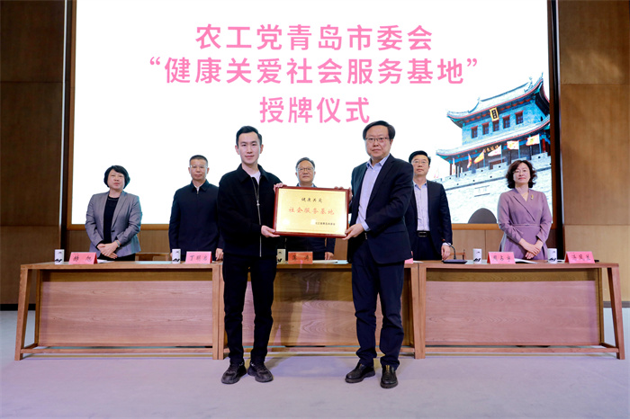 启动仪式上,农工党青岛市委会为青岛市市北区春雨残疾人辅助性就业中心授牌“健康关爱社会服务基地”。