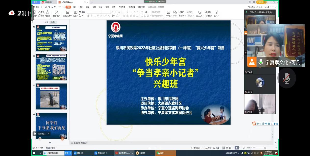 银川市民政局2022年社区公益创投(一标段)“复兴少年宫”项目争当孝亲小记者兴趣班在大新镇永泰社区顺利开展
