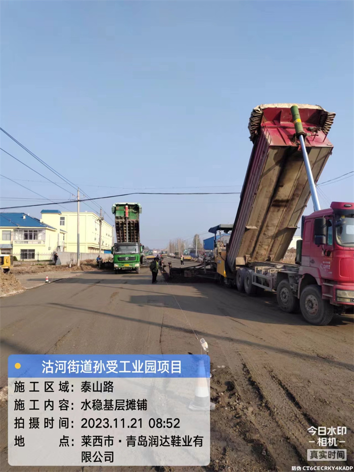 莱西市沽河街道孙受工业园聚集了泰石岩棉、博奇鑫浩、世邦盛泰、泽奥创展等大型企业,是沽河街道城市更新重点项目之一。为积极打造莱西新型环保建材发展的新高地。进一步完善城市功能、提升城市品质、持续优化营商环境,沽河街道按照城市更新和城市建设三年攻坚行动部署要求,实施孙受工业园基础设施改造提升工程,建设内容主要包括六条道路改造升级,包含雨污管网、路灯、绿化等配套工程,目前,泰山路北段已铺设水稳层480余米,水稳层铺设完成后,将陆续进行水稳层养护、路面沥青摊铺等工作,聚泰路预计12月中旬实现通车。