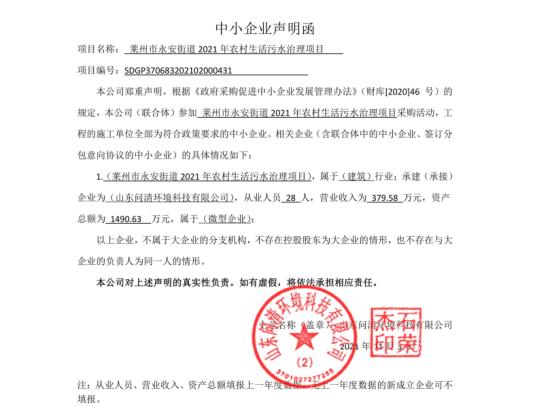 公共资源交易网显示,问清公司2021年11月3日中标莱州永安街道一小额污水项目时,自证“微型企业”;工商资料显示,2020年5月,问清公司以一台“中空吹塑机”抵押借款163万元,还款期限至2022年4月23日;2022年第四季度,该公司还存在3238.01元的欠税记录。