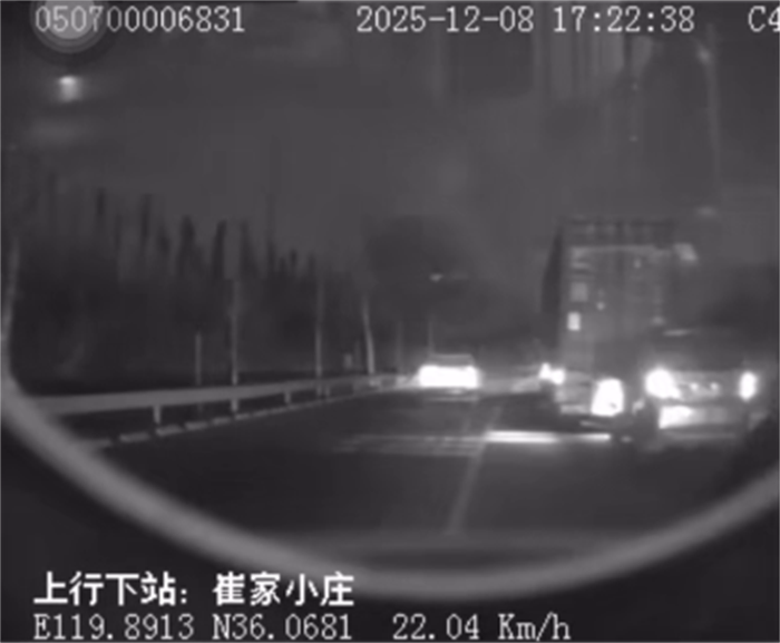 12月8日,青岛城运胶州交通发展集团3507路公交驾驶员赵本亮空载运行至崔家小庄附近时,发现前方一辆面包车与一辆半挂车追尾后被拖拽行驶,而半挂车司机对此浑然不觉。