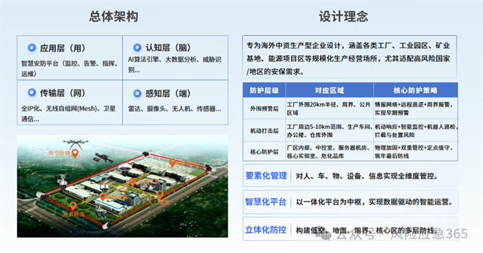 面向海外中资企业的高风险运营环境,推出“空地协同工厂全域智防系统”。