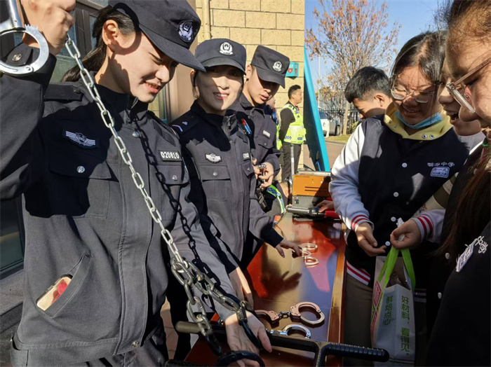 为进一步增进警民互动交流,加强青少年法治安全教育,11月21日上午,胶州市公安局三里河派出所举行了一场“硬核”警营开放日活动,邀请了胶州市瑞华实验初级中学一百余名师生走进警营,“沉浸式”体验公安工作,近距离感受警营文化。