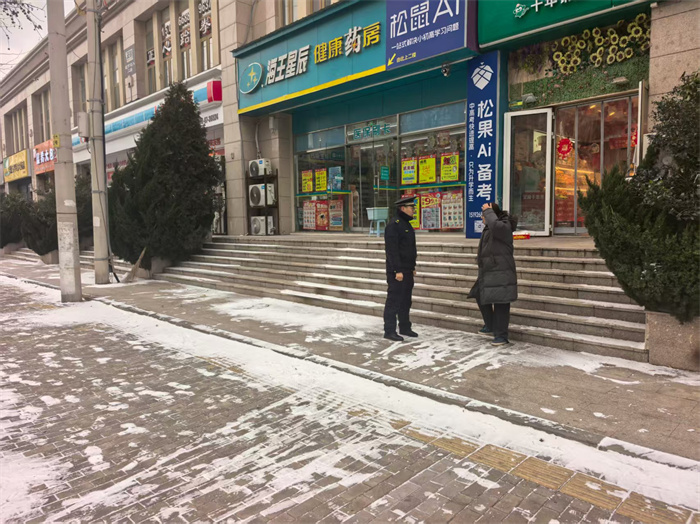 执法人员以辖区主干道、学校、医院、商圈等人员密集区域为重点,逐户走访沿街商户与企事业单位,面对面督促相关责任主体严格落实市容和环境卫生责任,按照规定扫雪除冰,确保“雪停即清、路净畅通”。截至目前,累计宣传规劝商户履行责任区责任182起,有效激发了社会参与力量,保障了道路安全通畅,为市民安全出行提供了有力支撑。