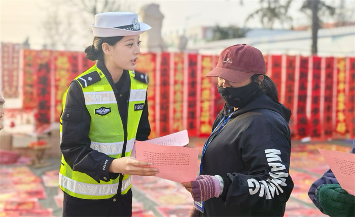 在执勤点、服务站,民警还提供热水、急救药品、简易维修、问路指引等暖心服务,用温情守护团圆路。2月4日,莱西市公安局交管大队走进文化市场,通过交通安全知识展板、宣传手册讲解交通安全知识。2月9日,支队联合平安财险青岛分公司在台东步行街举办主题宣传活动,通过宣讲互动送安全上门,提升群众安全意识与应急能力。
