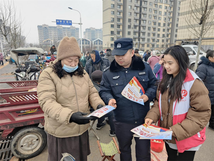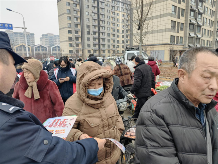 深入集市 宣传融入市井烟火 民警利用集市人流量大的有利时机,在集市入口、摊位集中区等位置设置宣传点,悬挂醒目横幅。化身“普法宣讲员”,穿梭于熙熙攘攘的人群中,将一份份图文并茂、通俗易懂的《防范非法集资宣传教育手册》和宣传单递到居民手中。