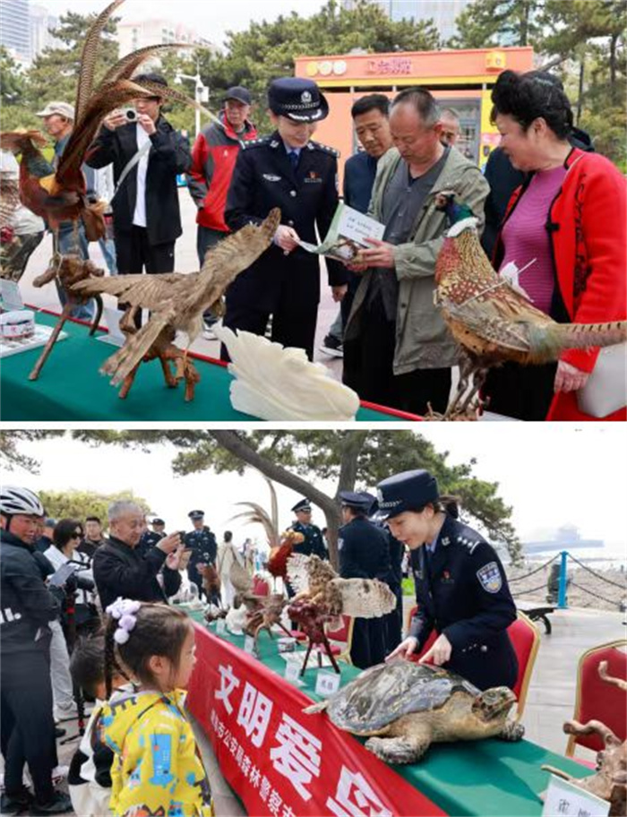 4月27日,青岛市公安局森警支队在栈桥景区举办“爱鸟周”主题宣传活动。活动通过设立咨询展示台、悬挂宣传标语、发放普法手册、现场互动交流等形式,宣讲非法猎捕、交易、食用野生鸟类的法律后果与生态危害,普及文明观鸟、科学护鸟及受伤迷途野生鸟类救助知识,取得了良好宣传成效。
