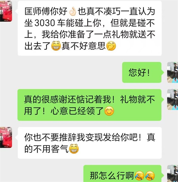 然而,这份温暖并未就此画上句号。此后一年多,袁先生始终惦记着这份善意,每次乘坐3030路公交车时都随身携带感谢物品,希望能遇到匡增娟当面致谢,却一直未能如愿。直到2025年10月,袁先生通过微信联系上匡增娟后,提出转账500元表达心意,依旧被匡增娟坚定而温暖地谢绝。