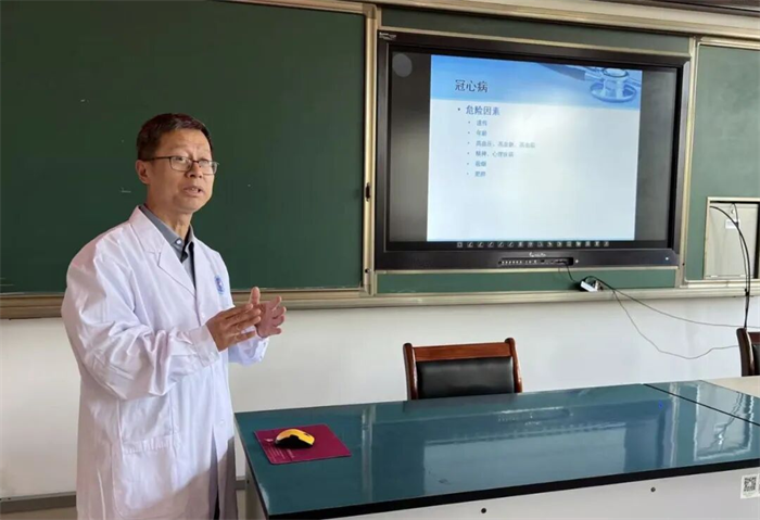 讲座中,心脏中心主任胥学伟结合教师职业特点,针对长期伏案工作、精神压力较大、作息不规律等健康隐患,重点围绕冠心病展开细致讲解。他从疾病的早期症状、发病原因、危险因素,到科学用药、日常调理、生活方式干预等方面进行全面科普,特别提醒老师们关注头晕、胸闷、心慌等身体信号,做到早发现、早预防、早治疗。