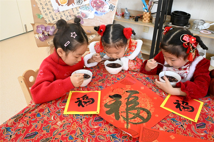 即墨区皋虞路幼儿园园长黄玉香表示,过了腊八就是年,每年的腊月初八,中国人民有吃腊八粥的习俗。传统节日活动的开展,不仅锻炼了孩子们的动手能力,还让他们深入了解了中华传统节日,将“文化传承”的小小种子,悄悄种进了孩子们的心田。通过本次活动,孩子们了解了腊八节的由来和风俗习惯,知道中国传统节日的博大精深,感受到了传统节日的温暖和快乐。(张 涛)