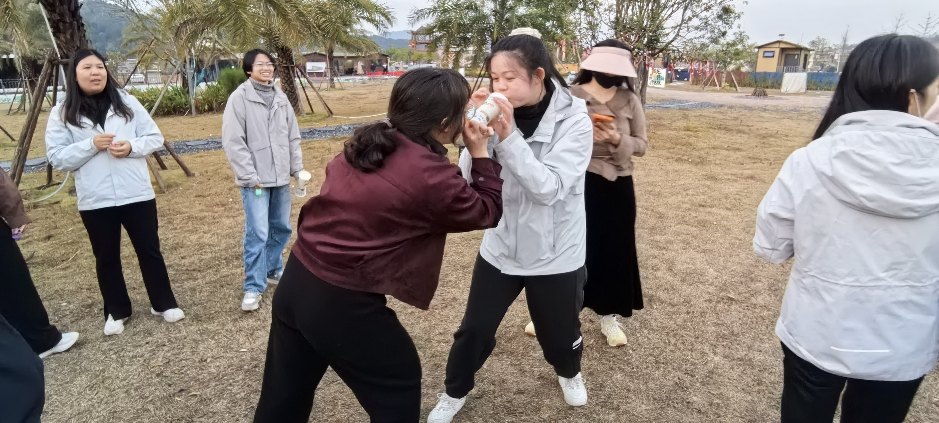 在团队协作环节,一系列精心设计的趣味项目将活动推向高潮。“气球传纸杯” 中,大家手拉手围成同心圆,齐心协力传递纸杯,每一次起落都凝聚着集体的力量,深刻诠释了 “人心齐、泰山移” 的协作真谛;“趣味三子棋”“蒙眼敲锣” “蒙眼踏步”“心有灵犀”等互动游戏里,各小组队员快速磨合、默契配合,在紧张刺激的比拼中增进了解、拉近距离,赛场内外加油声、欢笑声此起彼伏;“共同进退” 项目则考验着队员们的沟通协调与应急应变能力,大家群策群力、互帮互助,在一次次尝试与突破中体会到 “分工协作、荣辱与共” 的团队精神。每个项目结束后,各小组及时复盘总结,分享协作心得,将活动中的感悟转化为工作中可借鉴的方法,让团建活动既有 “趣味性” 更有 “实效性”。