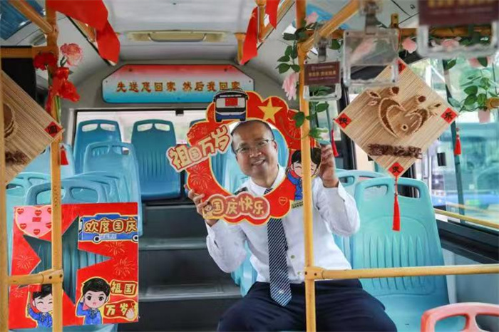 第十分公司947路驾驶员韩桥德也结合线路特点与乘客需求,围绕国庆主题对车厢进行个性化布置。从车窗上鲜艳的国旗贴纸,到扶手旁悬挂的国庆小挂饰,每一处细节都经过精心考量,既营造了庄重喜庆的节日氛围,也让日常通勤的乘客感受到浓浓的家国情怀。