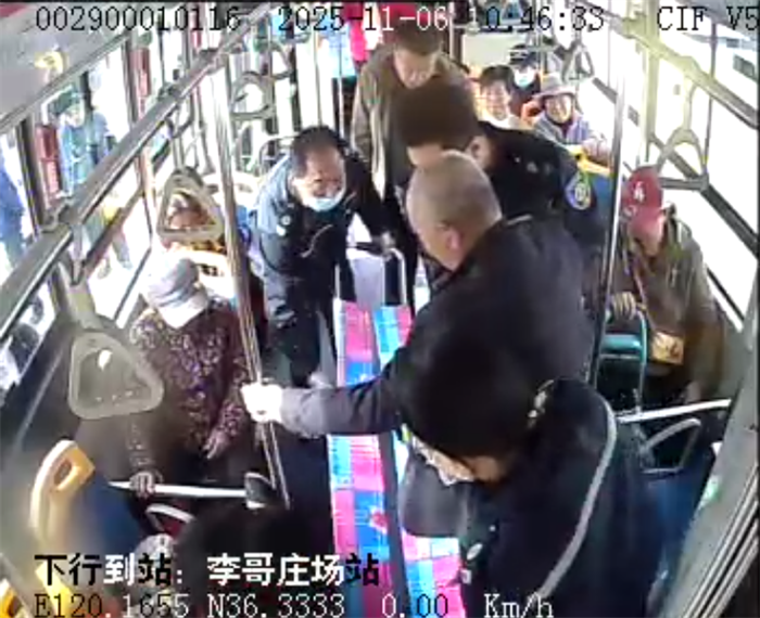 11月6日上午10时40许,一对年约七旬的老夫妇从胶州市李哥庄镇十字坡赶完大集,在李哥庄公交场站外的站点登上3029路公交车。正当老两口等候发车的时候,老汉突然呼吸困难,意识模糊,面色发紫,十分痛苦。“老头子你怎么了?”老伴当场慌了神,不停的拍打呼喊老汉。
