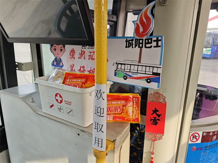 除了视觉上的惊喜,车厢内的暖心配置更显诚意。邱月山不仅为座椅加装了棉坐垫、为扶手包裹了棉套,还特意准备了暖宝宝,供有需要的乘客取用。“天气冷了,希望这些小物件能让乘客感受到一丝温暖。”邱月山的话语朴实而真挚。