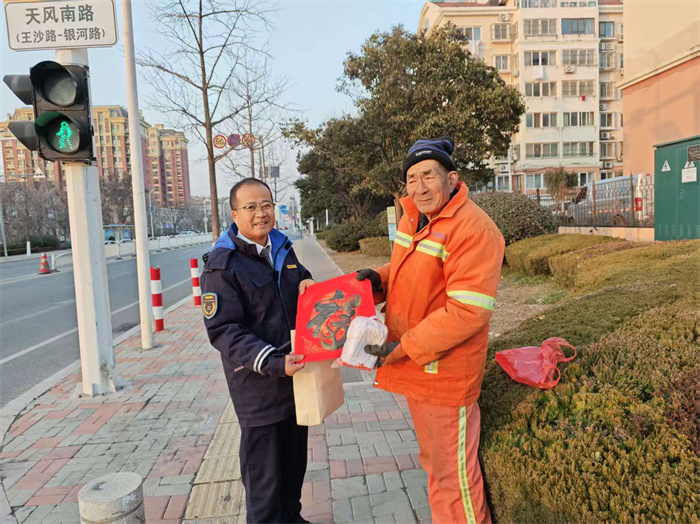 在史家泊子户外劳动者驿站,温馨的一幕正在上演。第十三分公司374路驾驶员邱月山将自己亲手书写的一张张红底金字的“福”字送到环卫工人手中,同时送上的还有厚实保暖的白手套。“师傅们每天天不亮就开始清扫,手经常冻得通红,希望这手套能帮上点忙。”邱月山朴实的话语中满是关切。接过福字和手套的环卫工李大姐笑容洋溢:“这副手套暖手,这个‘福’字暖心!”