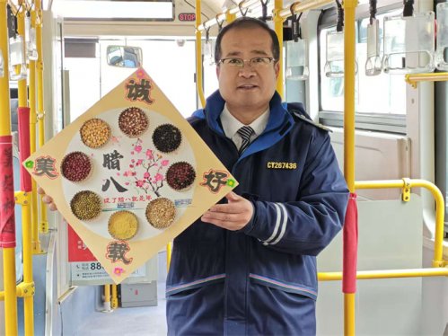与此同时,374路线驾驶员邱月山精心打造的“腊八民俗主题车厢”成为城市流动的风景线。车厢内悬挂着用五谷杂粮制作的“腊八节·诚载美好”主题挂件,车窗上贴有腊八节由来和习俗的介绍,让乘客在出行途中感受传统文化的魅力。许多乘客表示,这样的主题车厢让日常通勤变得有趣又有意义。
