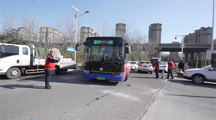 针对大集期间车辆增多引发的交通拥堵问题,374路驾驶员邱月山也带领志愿者到流亭大集化身交通疏导员,在车站周边路口规范车辆停放秩序,引导过往车辆有序通行,及时疏导人流车流,有效缓解了周边交通压力,保障了市民出行安全顺畅。
