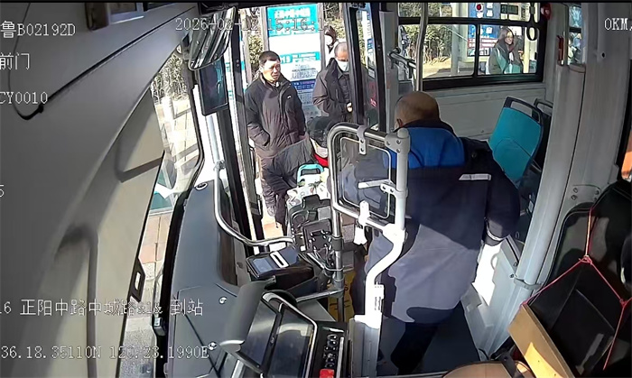 2月12日,916路驾驶员陈学尧在正阳路中城路站停靠时,看到一位老人提着沉重的小推车准备上车。他立即起身,快步走到车门口,接过小推车,帮老人提上车厢,并安排老人就近坐好。一个小小的弯腰动作,一句贴心的叮嘱,让老年乘客感受到了节日里的关爱与尊重。