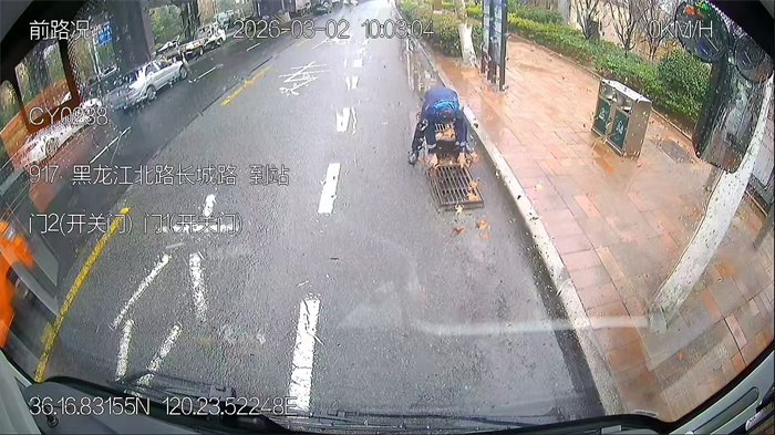 3月2日10点03分,城阳巴士917线路238车驾驶员郭双修执行上行任务,行驶至黑龙江北路长城路站时,发现路边雨水箅子移位。该隐患不仅影响车辆通行,还可能危及行人安全。驾驶员立即平稳停靠车辆,在确保营运安全与车内乘客秩序的前提下,迅速下车将移位的雨水箅子复位,及时消除道路安全隐患,保障了市民出行畅通。