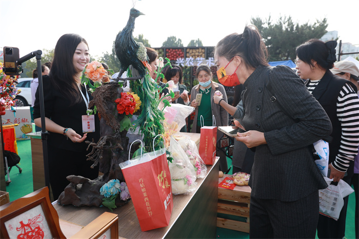 启动仪式现场设置了特色展区与互动板块,“村书记严选”和“家乡好农品”主题直播间邀请“村书记”主播代表和省内外优秀乡村主播现场开展助农直播活动;“兴农艺术馆”互动展示区聚焦山东特色的“农品”艺术,带来花饽饽、葫芦雕刻等农民创意作品,增强观众沉浸式体验;“地道家乡味”美食互动展设置50米流水席,特色企业携名菜、名小吃、名厨参加活动,现场制作美食,供参会嘉宾、市民互动品尝,同时由企业主播现场进行直播带货,宣传推介特色家乡味;“家乡好物上链接”主题展销对接会则汇聚全国优质农产品企业,搭建高效洽谈区域,供各参展企业与各大电商平台、主播团队进行合作交流。整个10月,山东省还将陆续推出百县优品“产地溯源”直播嘉年华、“优质农品进万家”私域选品会、“16市优质产品”擂台直播赛等多项配套活动,形成线上线下联动、产销双方互动的热烈氛围。