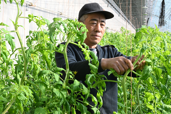 走进移风店镇上泊村村民陈星财的温室大棚,一颗颗西红柿挂满藤蔓、长势良好,陈星财正忙着给西红柿秧清理多余的叶子。他总共种植了14个大棚,有西红柿、黄瓜、大白菜、西兰花等。面对记者的疑问,这位59岁的农民憨笑地说:“咱农民别的手艺,就跟着园区、镇里的农技员学习种菜的技术,多捣弄几个大棚,增加收入。”随着种植技术的不断娴熟,大棚作物产量逐年提升,陈星财的生活也越过越红火。据了解,陈星财种植大棚蔬菜已有十多个年头,期间自主培育西蓝花、紫长茄、早椒等品种的蔬菜,按照传统的无公害、纯绿色方式管理,经过他的精心管理,年年喜获丰收。 “今年我种的一个大棚西红柿,亩产预测可达7000斤,顺利的话这一个棚就可以卖2万多元,我还种了黄、西兰花、小白菜等种类,预计元旦后成熟。”陈星财笑着说。