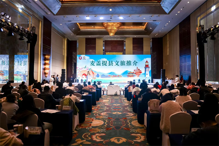 推介会在特色歌舞《我的爱献给祖国母亲》中拉开帷幕。喀什地区及疏勒县、麦盖提县、岳普湖县、英吉沙县等县市文旅代表,通过图文、视频全方位展示喀什古城、慕士塔格峰、达瓦昆沙漠、刀郎文化、非遗小刀等特色文旅资源,让嘉宾沉浸式感受丝路喀什的独特魅力。