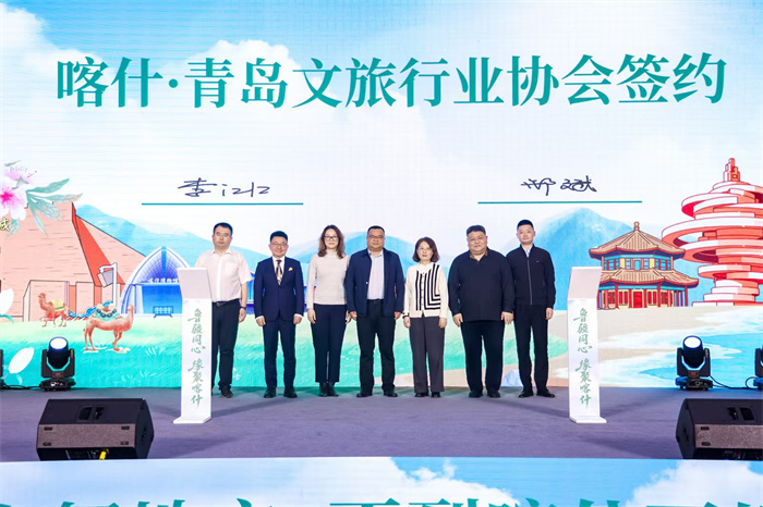 签约环节,喀什与青岛两地文旅行业协会签署战略合作协议,将在旅游线路开发、产品推广、客源互送、人才交流等方面开展深度合作,助力“引客入喀”,推动两地文旅资源价值最大化。此外,现场还设置文旅体验区与喀什礼物市集,展示非遗技艺与特色物产,将喀什的风土人情、民俗文化、特色物产生动立体地呈现在嘉宾面前,引得现场嘉宾频频驻足关注。