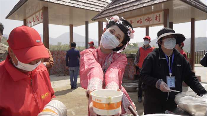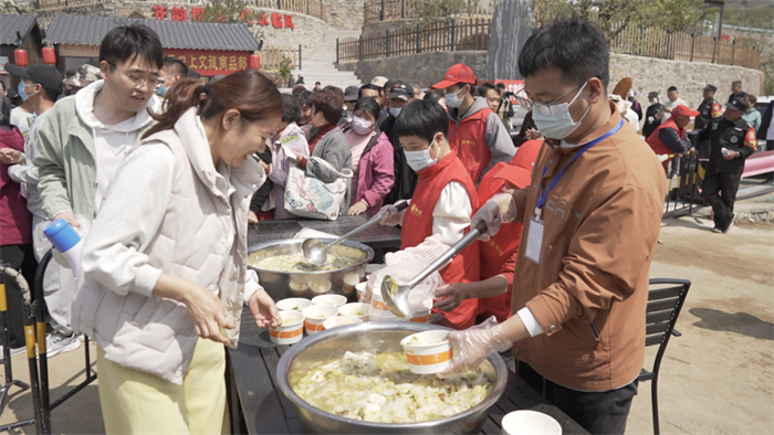 上午10时,黄花峪村美食主会场热闹非凡,本届赏花会创新推出“齐鲁第一锅请柬”打卡活动,游客在黄花峪村领取请柬后,按照指引到任意6家合作餐厅完成打卡,即可享受专属优惠,并免费品尝当日咕嘟杀猪菜。热气腾腾的杀猪菜鲜香浓郁、原汁原味,大家围坐同食,在浓浓烟火气中感受汶源地道风味,尽享春日舌尖美味。