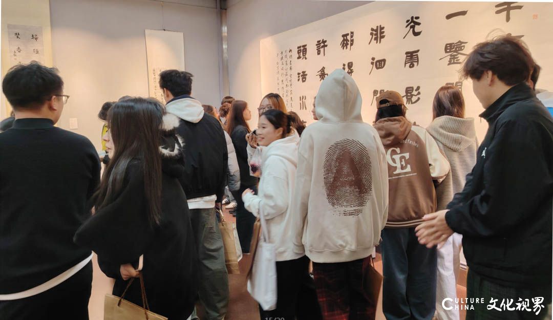 活动现场氛围热烈,作为山东财经大学艺术学院硕士研究生导师的展览书法家高远教授现场为山东文化产业职业学院的百余名艺术专业学生上了一堂生动的书法理论和鉴赏课,活动当天吸引观众近600人,精彩作品受到家乡群众一致好评。