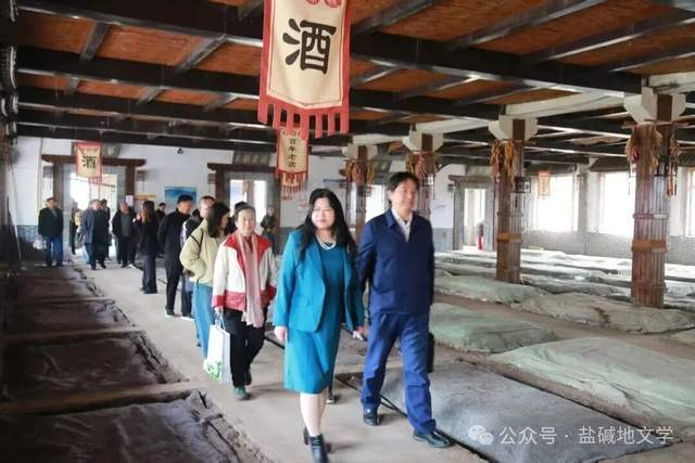 当日上午,作家们在氤氲酒香中开始了宏源酒厂的文化探访之旅。这座始建于清代的百年酒坊,其传统酿造技艺已被列入山东省非物质文化遗产保护名录。作家们先后参观了占地 3000 平方米的酒文化博物馆、恒温恒湿的地下酒窖以及传统的酿酒车间等。宏源酒业总经理张晓飞介绍,酒厂至今仍完整保留着北魏《齐民要术》记载的传统酿酒工艺,每年举行的踩曲仪式已成为当地重要的文化景观。“这种对传统技艺的坚守令人钦佩。”山东省作协会员、山东省摄影家协会会员、潍坊市非物质文化遗产保护协会副会长冯金玉赞叹道。中国自然资源作家协会会员、山东作协会员张雯则表示,宏源酒厂将工业生产与文化传承完美结合的模式,为文学创作提供了丰富的素材来源。