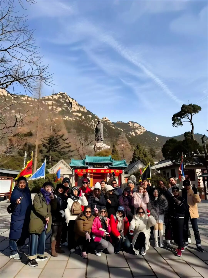 旅途中,泰国游客团循着崂山区入境游精品路线,在沙子口,游客们漫步滨海步道,远眺碧波万顷的黄海,近距离感受渔家小镇的淳朴风情;在太清游览区,千年道观的古朴禅意与冬日山海的壮阔景致交相辉映,在导游的细致讲解下,了解崂山道家文化的深厚积淀与“仙山·圣水·福地”的文化内涵,享受山海之美,随后启程前往若七酒店。