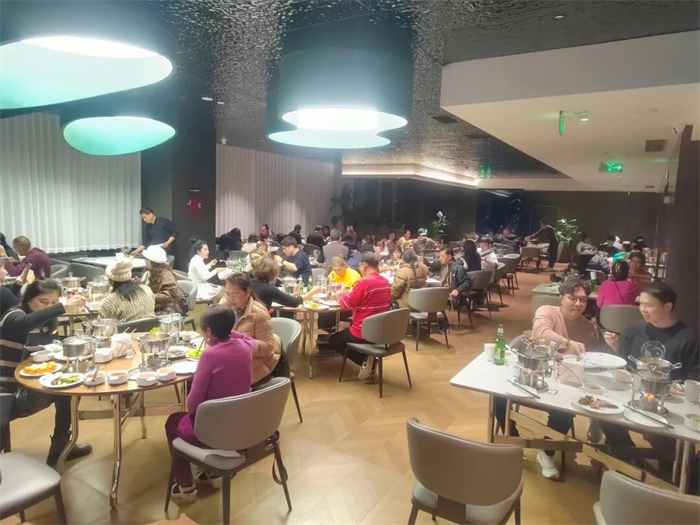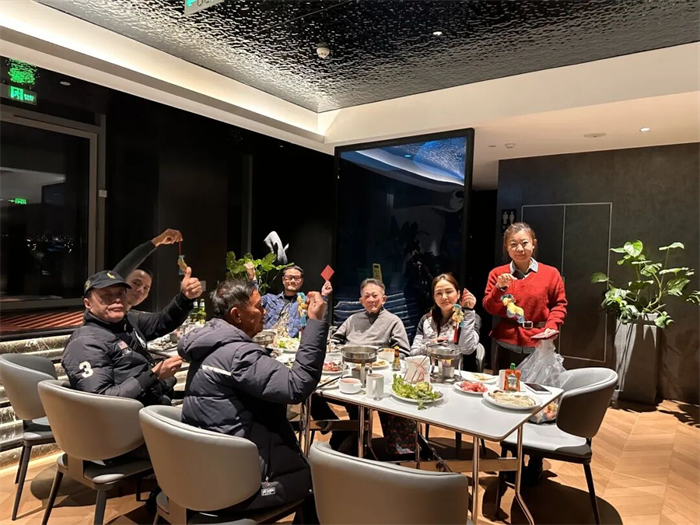 年夜饭现场,丰富多样的互动活动轮番上演,暖意与欢乐交织。大屏幕上同步播放着春节联欢晚会,工作人员现场讲解春晚背后的年俗文化,即便语言不通,欢声笑语也能跨越隔阂,让泰国游客直观感受中国春节的热闹氛围与团圆内涵。活动中,酒店特别为旅行团中属马的客人及临近生日的游客送上定制生肖礼物,传递新春的诚挚祝福,也契合了崂山风景区春节期间针对属马游客的优惠福利理念,让游客们感受到满满的诚意与温暖。