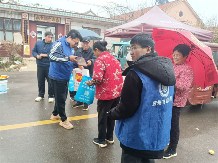 胶州市司法局里岔司法所工作人员及综合治理中心工作人员穿梭在熙熙攘攘的人群中,向过往群众发放《反邪教知识手册》《崇尚科学 反对邪教》宣传单页等资料。同时,结合典型案例,用通俗易懂的语言向群众详细讲解邪教的本质、特征、危害,以及如何识别邪教的骗人伎俩,提醒大家要警惕邪教以 “治病消灾”“宗教信仰”“养生保健” 等名义进行的渗透活动。