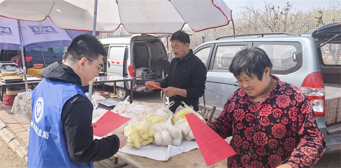 为进一步打通法治宣传“最后一公里”,提升辖区群众法治意识和安全防范能力,让法律知识走进田间地头、融入百姓生活,4月8日胶州市司法局里岔司法所联合里岔派出所等部门借力农村大集人流密集的优势,开展“普法赶大集”宣传活动。