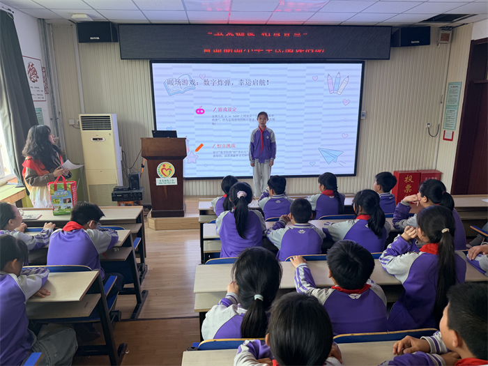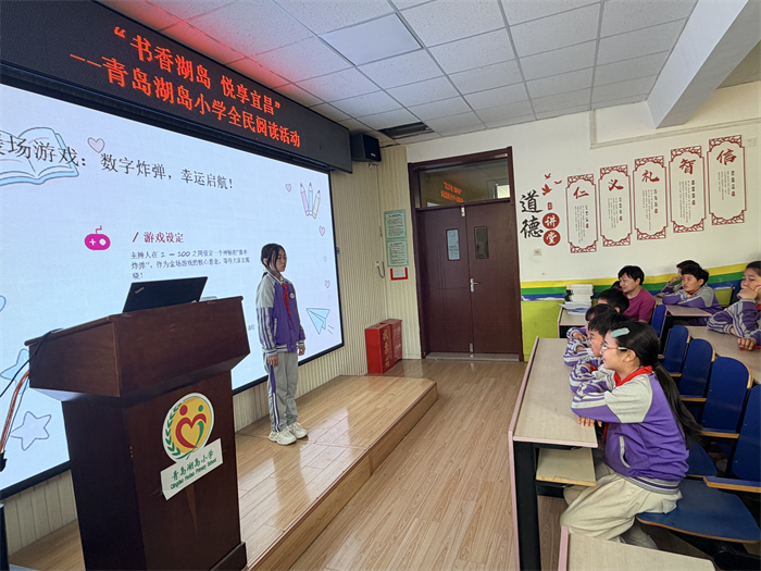 活动以趣味暖场游戏 “数字炸弹” 拉开序幕,同学们踊跃互动,现场气氛热烈。随后,阅读知识大闯关正式开启,分为课本知识小回顾、必读书目大挑战、文学常识小比拼三个环节,题目涵盖课文内容、经典名著、文学常识等,同学们积极举手、踊跃作答,在趣味答题中巩固知识、感受阅读乐趣。