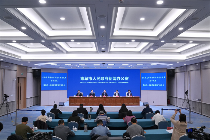 12月10日,青岛市人民政府新闻办召开政策例行吹风会,介绍《青岛市支持海洋经济高质量发展若干政策》相关情况。市海洋发展局党组书记孟庆胜,市财政局副局长李红,市民营经济发展局党组成员、副局长、新闻发言人李晓峰,市海洋发展局总工程师张惠珺出席吹风会。