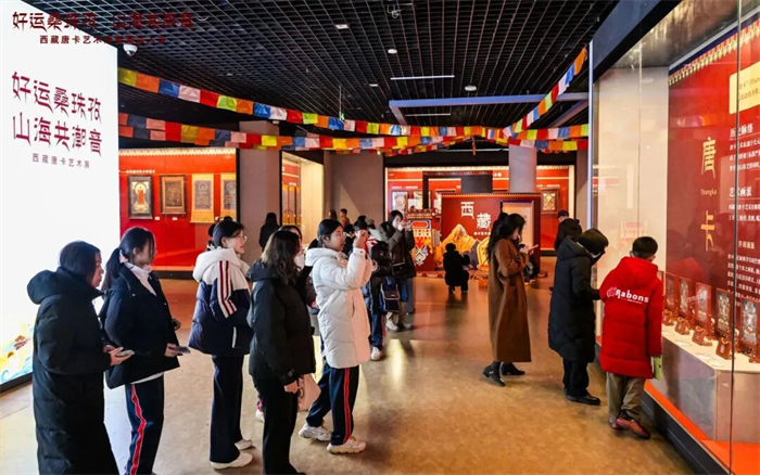 还在里院美术馆设置了展示日喀则市桑珠孜区独特文化魅力的西藏唐卡艺术展,在永春里举办串联百年里院的老青岛文化展,在广兴里举办萝卜雕刻大赛等,进一步放大民俗文化的魅力。同时,为了提高大家的参与感,在海云庵会场精心准备了用非遗技艺木版画设计的马年福字,参会市民游客可以现场拓印,将专属新年祝福带回家。