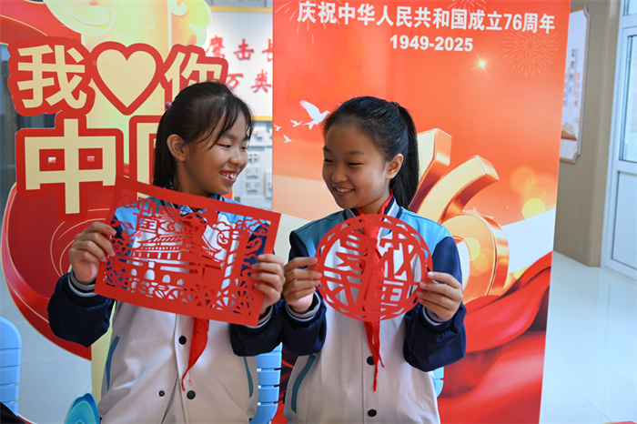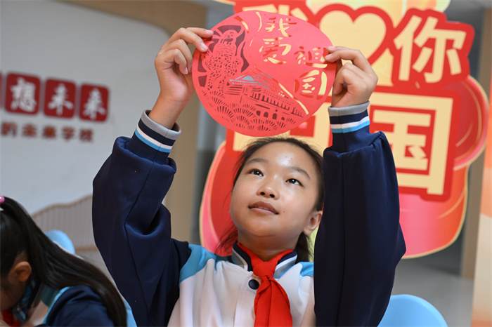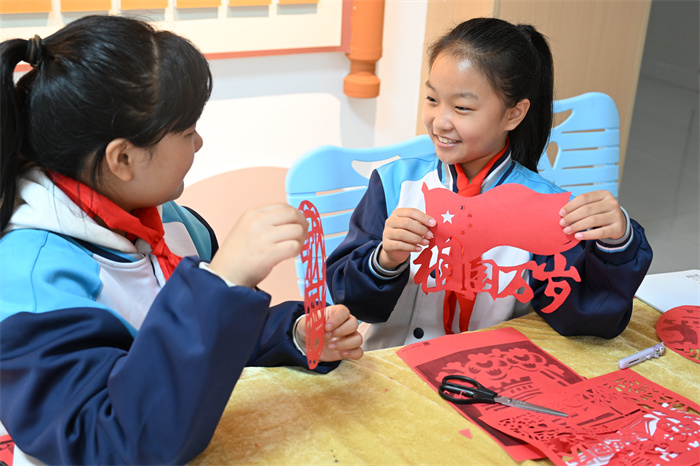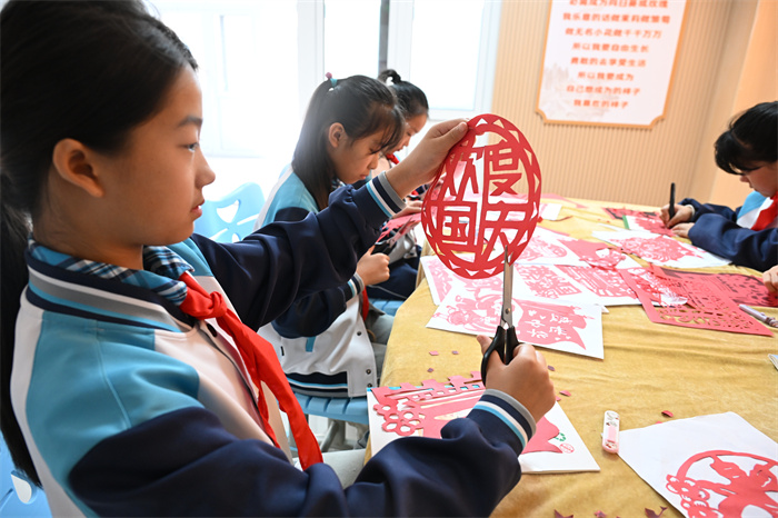9月28日,山东省青岛市即墨区潮海万科小学开展“巧手剪纸喜迎国庆”主题活动,通过制作迎国庆为主题的剪纸作品,表达对祖国的热爱和祝福之情,喜迎新中国成立76周年。同学们在老师的指导下,通过制作迎国庆为主题的剪纸作品和剪纸服饰,表达对祖国的热爱和祝福之情,喜迎国庆到来。