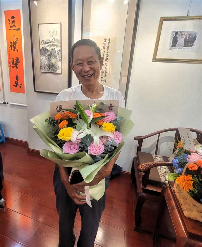 展墙前,83 岁的高赐川老先生身着素衣,目光温和地落在自己的作品上。这位 1942 年生于黄岛的本土书法家,与翰墨的缘分已跨越六十余载 —— 自幼便被案头的笔墨纸砚吸引,楷书临习颜柳之端庄,行书揣摩 “二王” 之飘逸,一笔一画间,埋下了对书法艺术的赤诚。年轻时虽为生计奔波,他却从未放下手中笔毫,公文之余、茶饭之后,总要展纸濡墨;待年过半百临近退休,更是摒除所有杂务,将全部时光交给砚台,每日习字不辍,墨池常润,终在笔锋与宣纸的千百次触碰中,淬炼出 自己“笔力苍劲如松,气韵流转似溪” 的独特风格。