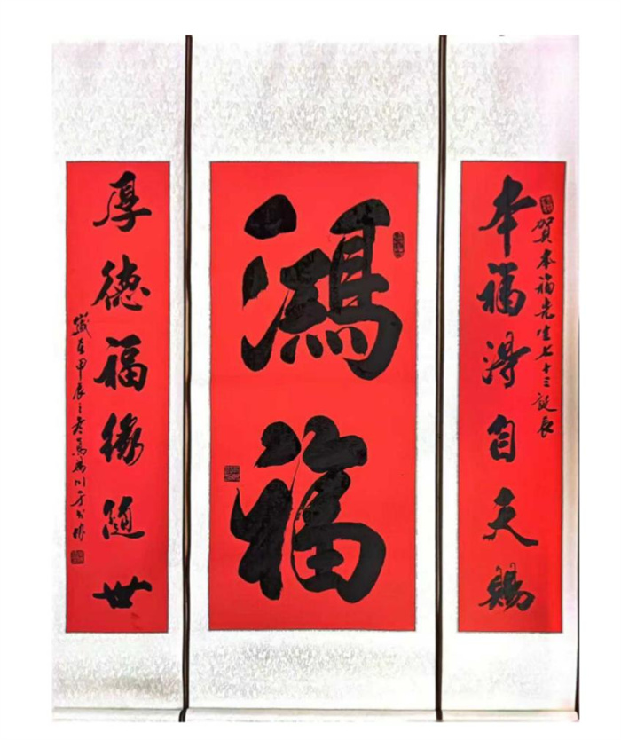 美术馆馆长李荣明先生,更是这场文化传承的重要推动者。作为国画大家吴悦石和鲍黎健的入室弟子,他身兼中国国家开放大学吴悦石先生助教、中国艺术研究院吴悦石工作室画家等职,出版《李荣明书画集》《秋庐草记》等著作。此次牵头组织并出资举办高赐川书法展,他坦言:“宣传大家名家的同时,更要推广身边的优秀乡贤 —— 他们是地域文化的根,是传统文化的活载体。高赐川先生的坚守,值得被更多人看见。”四、乡贤情深:扎根故土,薪火相传“乡贤文化是扎根于家乡的母土文化,是连接故土、维系乡情的精神纽带。” 高赐川先生,正是黄岛乡贤的生动写照。作为土生土长的黄岛人,他不仅以笔墨滋养自己的精神世界,更将这份热爱化作服务乡邻的行动:多年来,每逢春节,他总会支起桌子为居民义务书写春联,墨香里裹着年味儿;遇有老人过寿,他会免费题写 “福”“寿” 字登门祝贺,纸页间藏着温情;区里、街道组织 “文化下基层送福” 活动,他更是从不缺席,用一笔一画为群众送去精神滋养,这份 “为人民服务” 的初心,让他成为街坊邻里口中 “亲切的高老先生”。