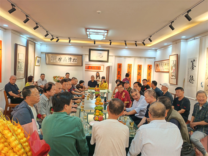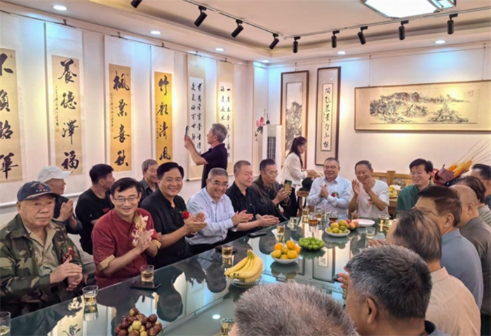 此次主办高赐川书法展,正是希望以乡贤文化为抓手,让居民在墨香中感受传统文化的魅力,增强社区凝聚力。正午时分的聚餐环节,更添一段诗意插曲 —— 孙丽蓉老师即席朗诵《读中国》,“在东方,有横撇竖捺的方块字”、“我们读中国,在唐诗宋词里读感恩的中国” 的声线,与展墙上 “祖国一统”、“不负韶华” 的墨宝相和,让家国情怀在诗声与墨香中愈发浓烈。徐伟老师在发言中动情说道:“高老先生的作品,不仅是艺术,更是一种精神 —— 他让我们看到,热爱可抵岁月漫长,坚守能让传统新生”。