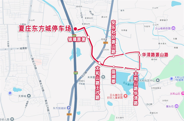 主站:夏庄东方城停车场,副站:华清路源山路。