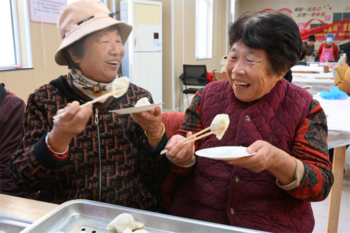 当天上午9时许,即墨区龙泉街道天一仁和郡社区里已经热闹非凡,医疗服务队志愿者正在帮老人们按摩、体检,提供健康咨询;理发组志愿者帮老人们理发、打扫清洁,手工组志愿者教老人学剪纸、做简单的手工艺品,社区里一片欢声笑语。为老人们包顿水饺,国立巾帼志愿者们以这种特别的形式向老人祝贺节日。洗菜切肉、和面拌馅,大家围在老人娱乐活动室的桌子周边一起包饺子,其乐融融。一个多小时后她们就包好了饺子。当把热腾腾的饺子端到老人面前时,老人们开心地笑了。志愿者们端上一盘盘热气腾腾的饺子,老人们吃得十分开心,整个食堂欢笑声不断,比过年还热闹。