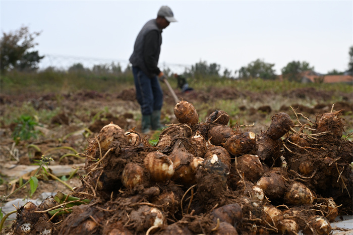 即墨区鳌山卫街道姜家白庙村田间地头,村民们正忙着采挖、分拣、装车,欢声笑语中洋溢着丰收的喜悦。当地肥沃的沙壤土与充足的水源为芋头生长提供了得天独厚的自然条件,这里出产的芋头品质优良,深受消费者的喜爱。