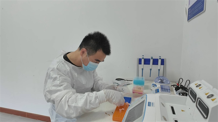 在浮山森林公园崂山园区的病虫害实验室里,检测人员正对一处新采样本进行分析。浮山森林公园树种丰富,每年的4月份到10月份,都是各种病虫害的高发期。
