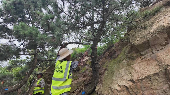 与实验室里精准“诊断”病虫害相呼应的,是山上林间一场场生态“手术”与科学养护。面对过去浮山林木过密、树种单一导致的生态系统脆弱问题,崂山区以大规模森林抚育为突破口,采用科学间伐、修枝整形与人工补植等精细化手段,去除生长不良、竞争激烈的林木,对树木的枝条进行合理修剪,为优质林木腾出生长空间,增强了树木的光合作用和通风透光条件。