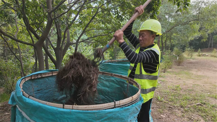 崂山区城市管理局工作人员 徐世晨:通过前期一些堆肥腐化的老料堆肥腐熟 ,这样周期的话大约在60天左右就可以成肥。腐熟的有机肥富含植物所需要的一些氮磷钾 一些微量元素以及有机质,可以提高土壤的空隙率,然后增加土壤的保水能力。