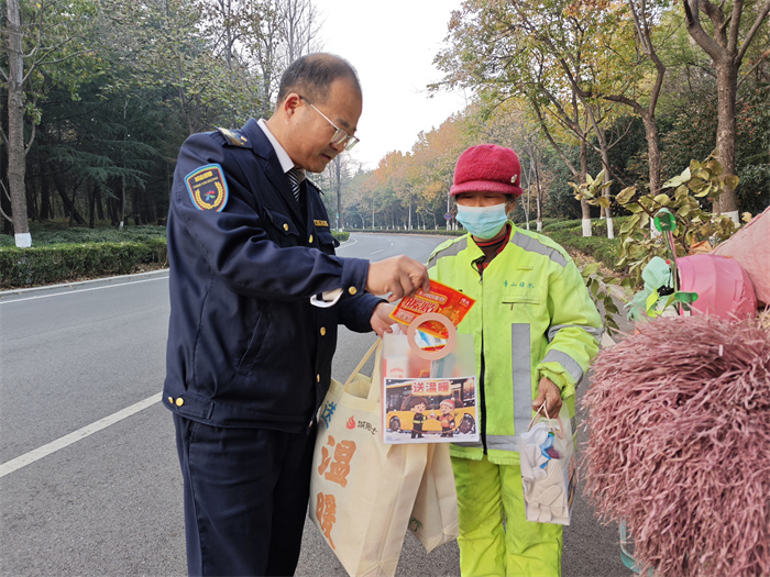 初冬的街头,落叶纷飞,环卫工人们橙色的身影早已在忙碌。邱月山一行没有过多的寒暄,迅速加入到清扫队伍中。他们手持扫帚、簸箕,与环卫工人并肩作战,仔细清理着人行道和绿化带里的落叶与杂物。有力的挥扫,默契的配合,额角微微渗出的汗水,共同构成了一幅冬日里温暖的劳动画卷。邱月山一边清扫一边与环卫工人交流:“你们起早贪黑,太辛苦了。我们就是想尽点力,让你们能稍微轻松一点。”