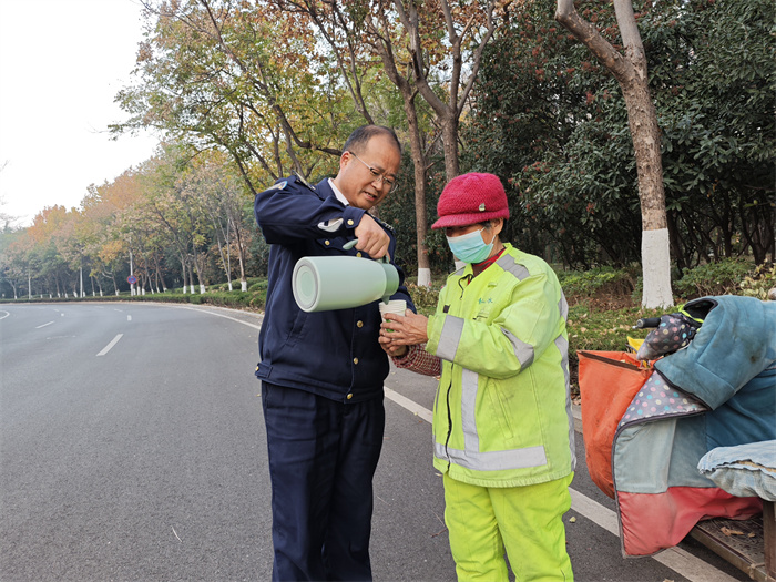 谈及组织这次活动的初衷,这位常年手握方向盘,穿梭在城市脉络中的老司机邱月山动情地说:“我们公交车驾驶员和环卫工人都是这座城市最早起、最晚归的人之一,我们每天都在路上,最能体会他们的辛苦。一点热水,一副手套,虽然东西不贵重,但希望能让他们在寒冷的冬天里感受到一些温暖。”
