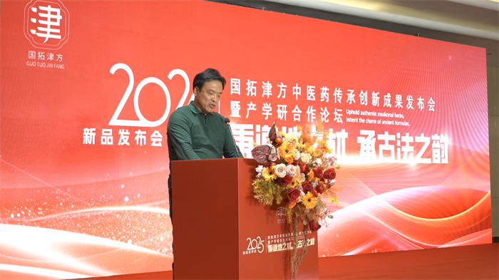 随后,国拓津方董事会代表闫总深情回顾了企业创业初心与发展历程,彰显了董事会对于传承中医药非遗精神的执着信念与深沉情怀,为企业注入了深厚的文化基因。领导的致辞共同强调了中医药行业健康发展所需的情怀、创新、质量标准与规范市场,为国拓津方指明了兼具宏伟愿景与坚实路径的发展方向。